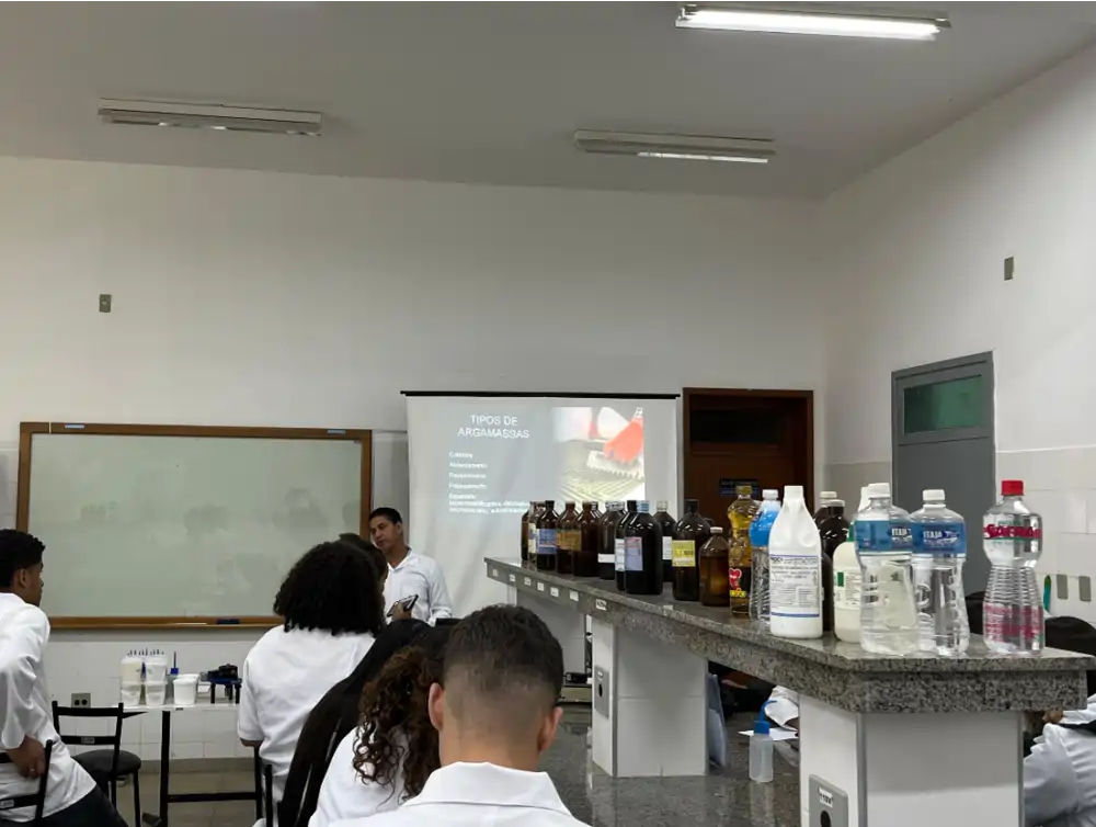 Ambos os minicursos contaram com demonstrações práticas, utilizando ensaios aplicados de controle de qualidade, similares aos realizados nos laboratórios da Grantex. Os estudantes acompanharam de perto como são feitos testes de aderência, retenção de água, consistência, resistência à tração e cobertura de tinta.